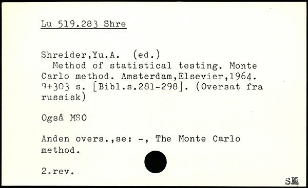 Shreider,Yu.A. (ed.) Method of statistical testing. Monte Carlo method.