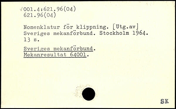 Nomenklatur för klippning. [Utg.avJ Sveriges mekanforbund.