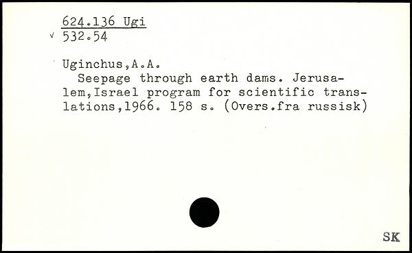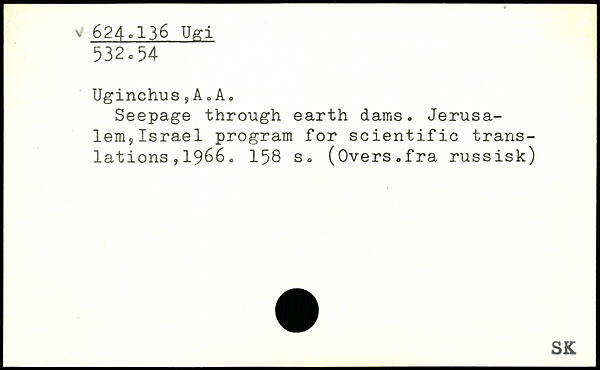 Seepage through earth dams. Jerusalem, Israel program for scientific translations ,1966.
