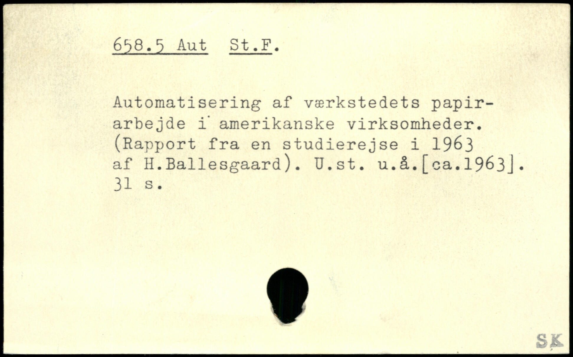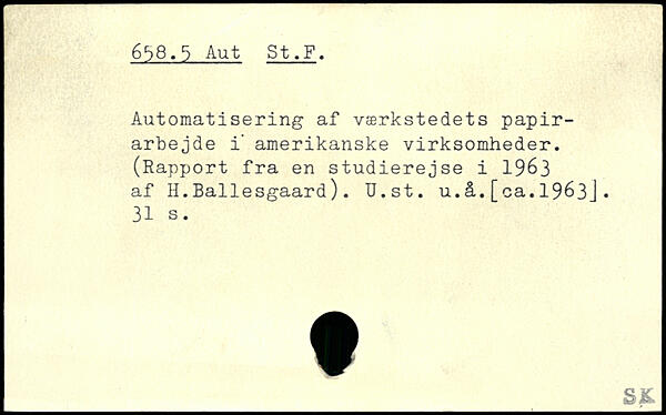 Automatisering af værkstedets papirarbejde i' amerikanske virksomheder. (Rapport fra en studierejse i 1963 af H.Ballesgaard). U.st. u.å.[ca.1963J.