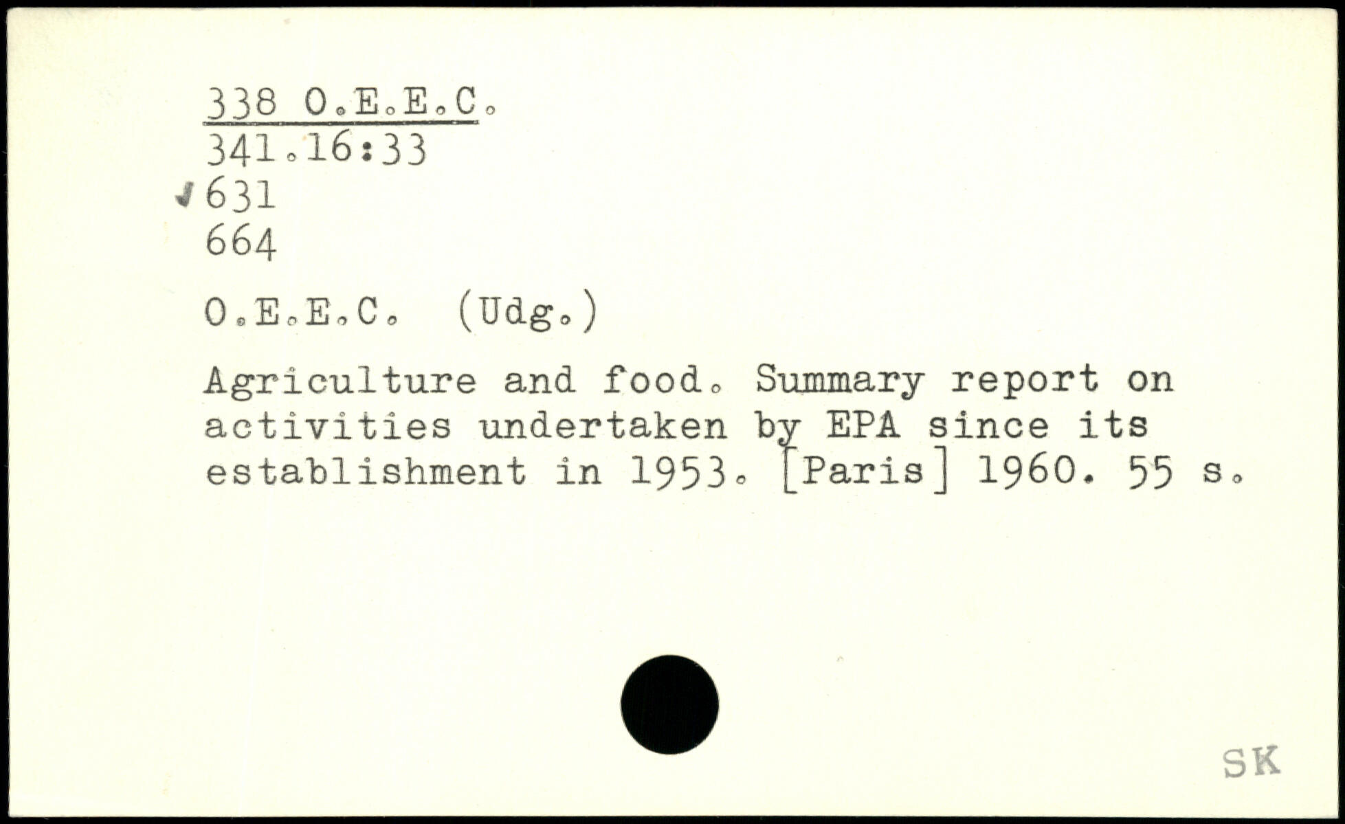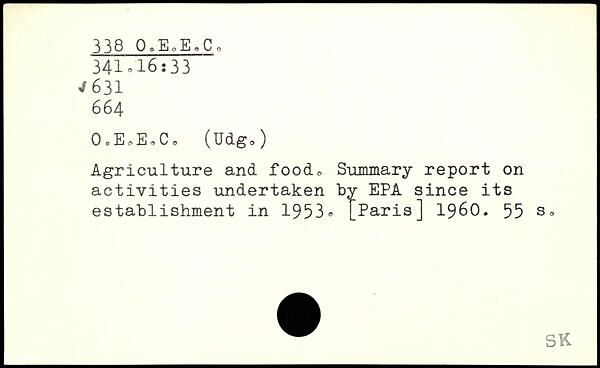 Agriculture and food, Summary report on activities undertaken by EPA since its establishment in 1953=
