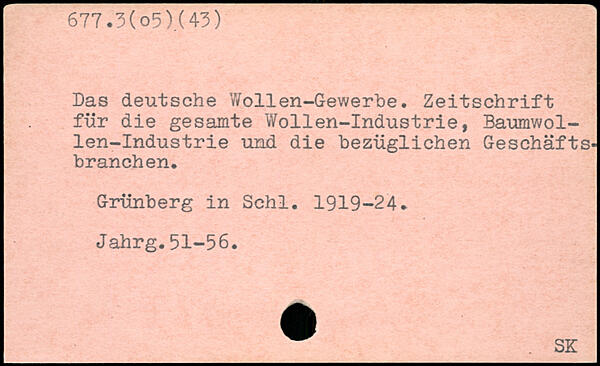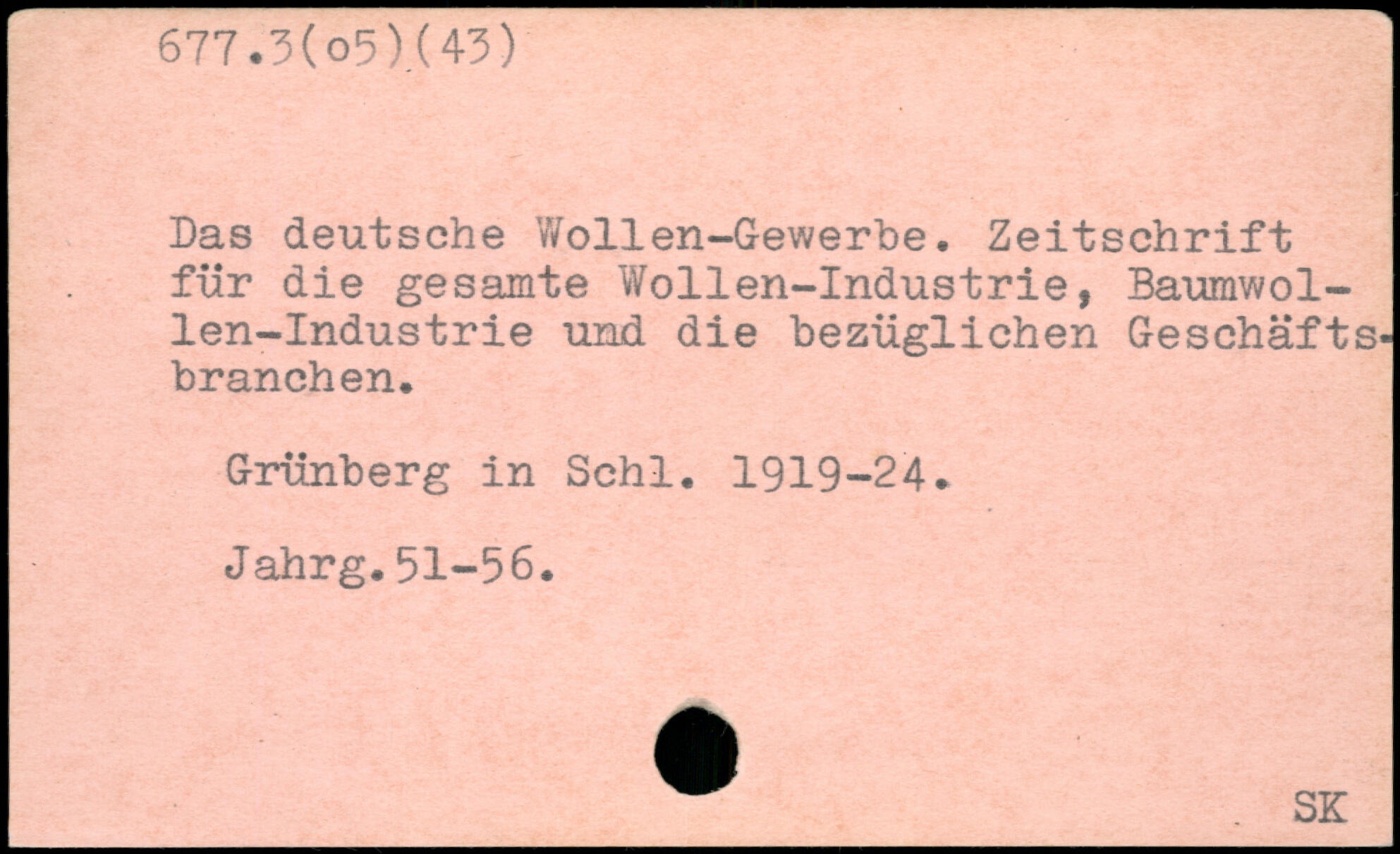 Das deutsche Wollen-Gewerbe. Zeitschrift für die gesamte Wollen-Industrie, Baumwol-len-Industrie und die bezüglichen Geschäftsbranchen. Grünberg in Schl. 1919-24. Jahrg.51-56. ® SK