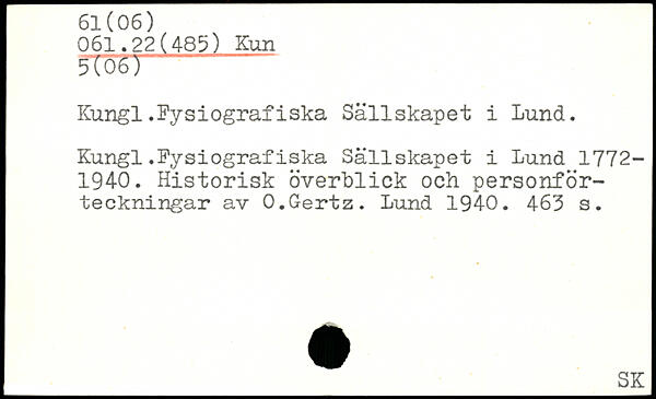 Kungl.Fysiografiska Sällskapet i Lund. Kungl.Fysiografiska Sällskapet i Lund 1772-1940. Historisk överblick och personförteckningar av O.Gertz. Lund 1940.