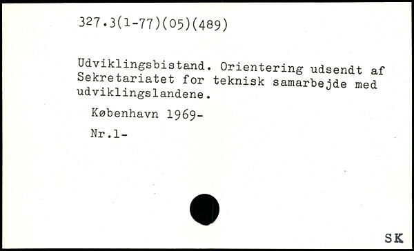 Udviklingsbistand. Orientering udsendt af Sekretariatet for teknisk samarbejde med udviklingslandene.