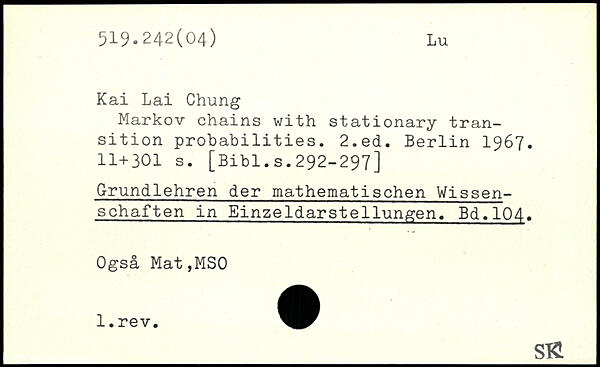 Kai Lai Chung Markov chains with stationary transition probabilities.