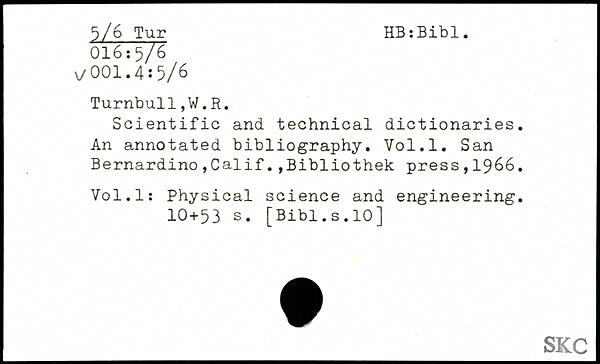 Scientific and technical dictionaries. An annotated bibliography.