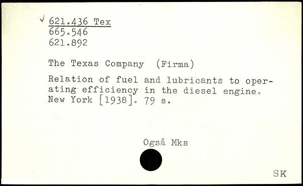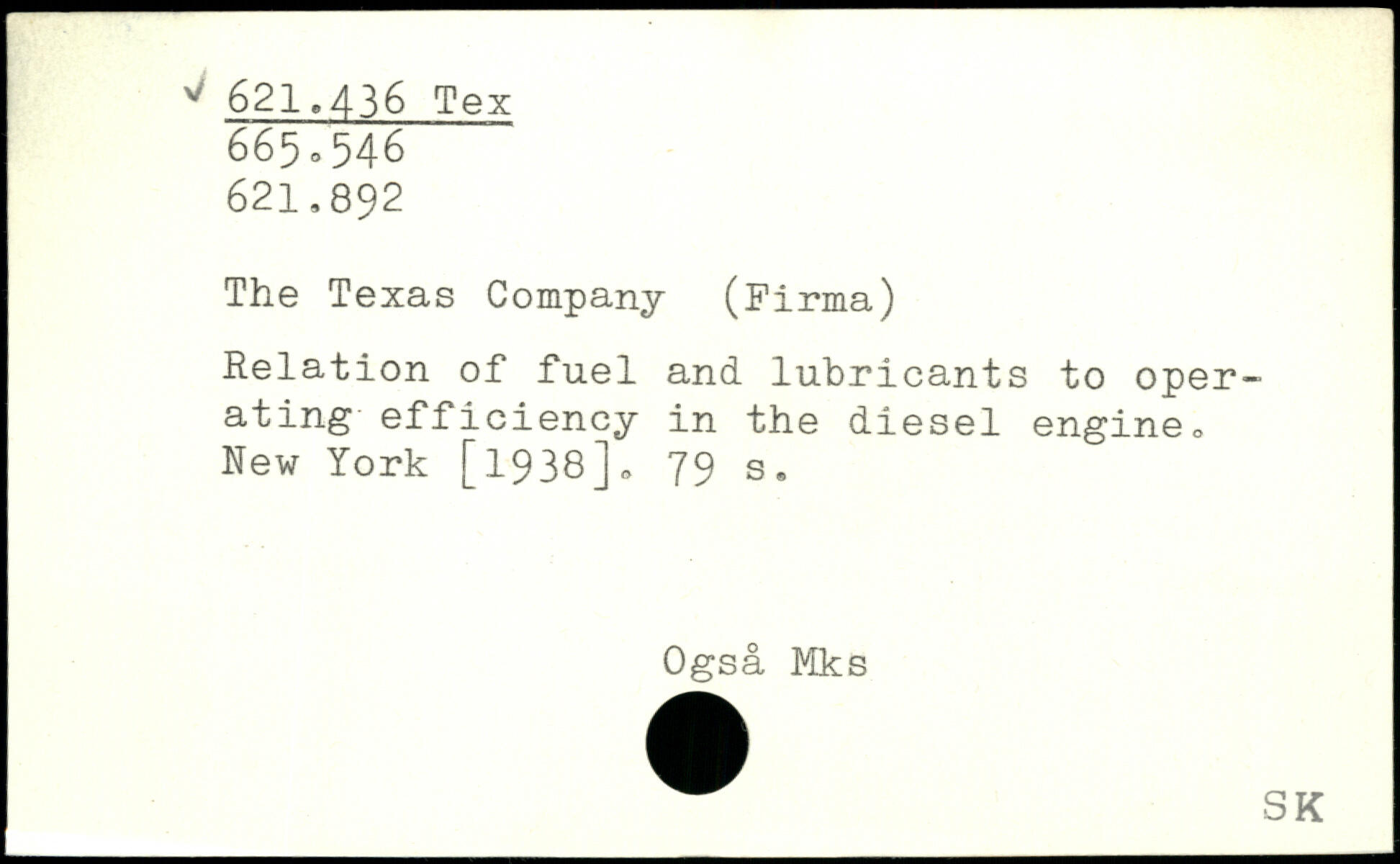 The Texas Company (Firma) Relation of fuel and lubricants to operating efficiency in the diesel engine.