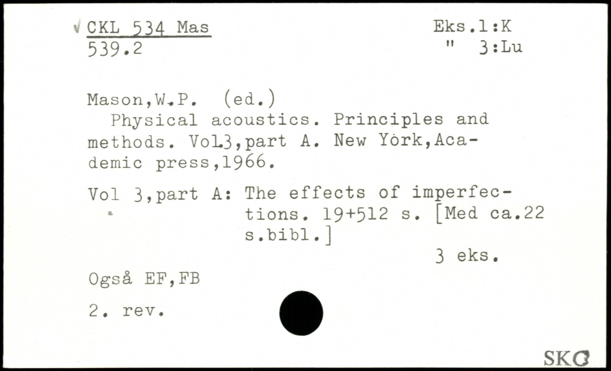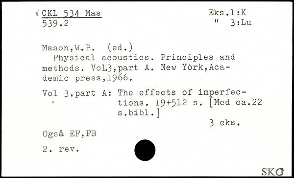 Physical acoustics. Principles and methods. VoL3,part A.
