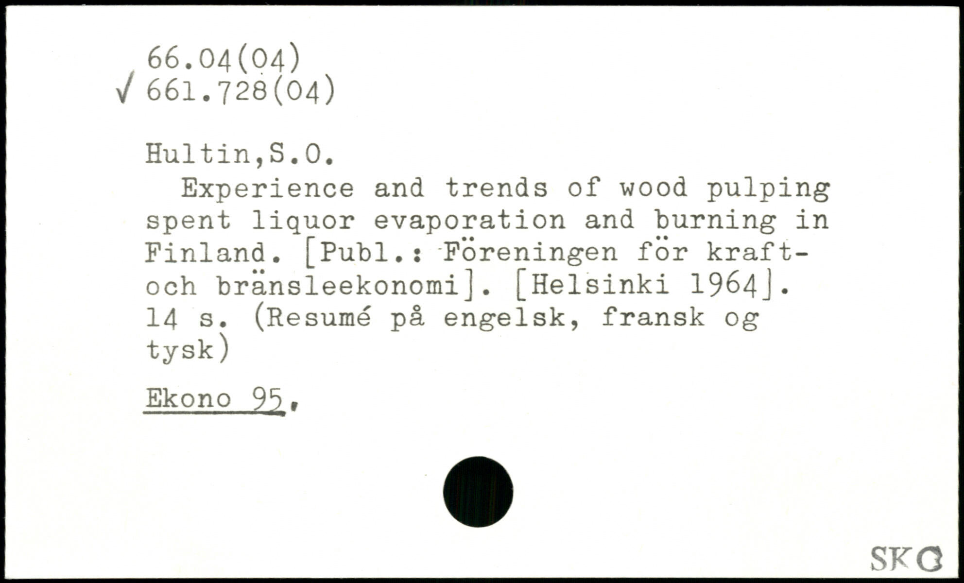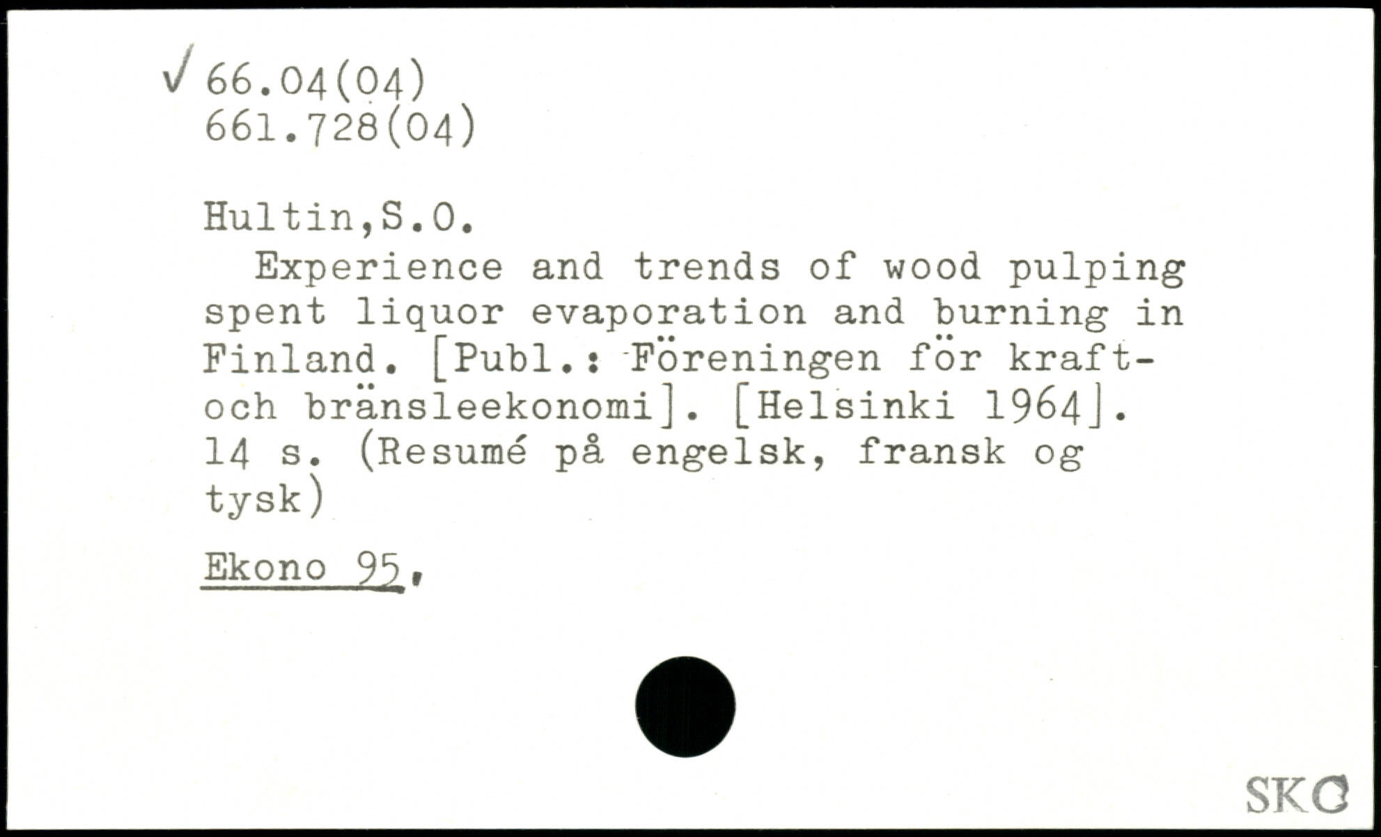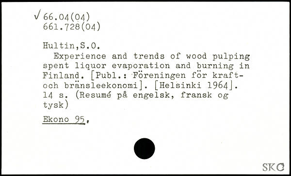 Experience and trends of wood pulping spent liquor evaporation and burning in Finland. [Publ.: Foreningen for kraft-och bransleekonomi].