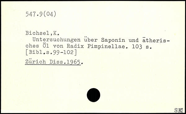 Untersuchungen über Saponin und ätherisches Öl von Radix Pimpinellae.