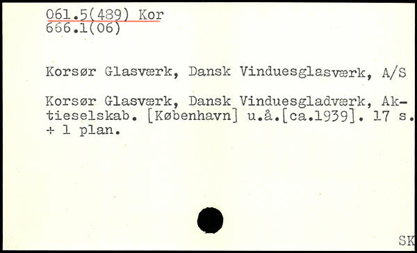 Korsør Glasværk, Dansk Vinduesglasværk, A/S Korsør Glasværk, Dansk Vinduesgladværk, Aktieselskab. [København] u.å.[ca.1939].