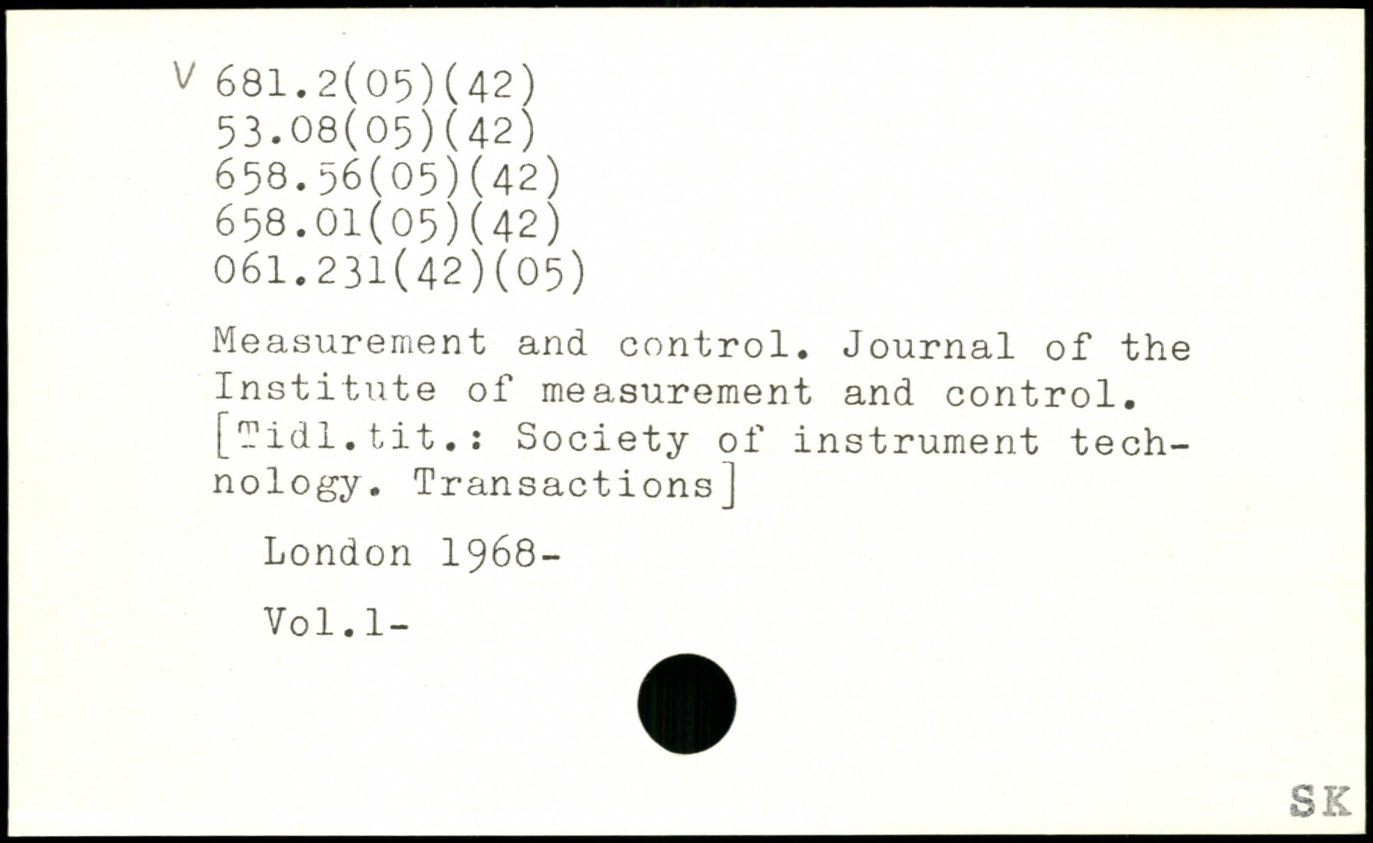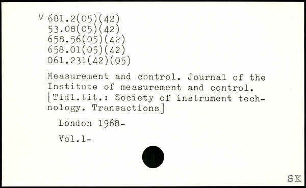 Measurement and control. Journal of the Institute of measurement and control. [Tidl.tit.: Society of instrument technology. Transactions]