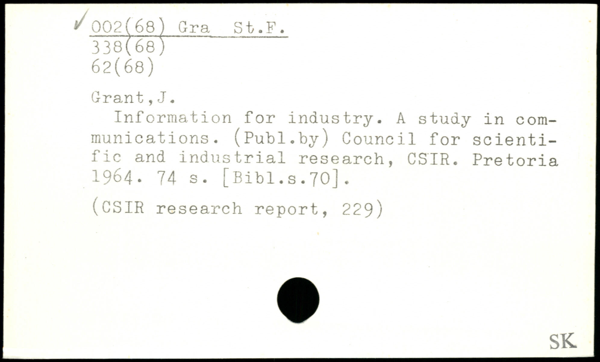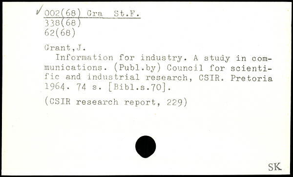 Information for industry. A study in communications. (Publ.hy) Council for scientific and industrial research, CSIR. Pretoria 1964.