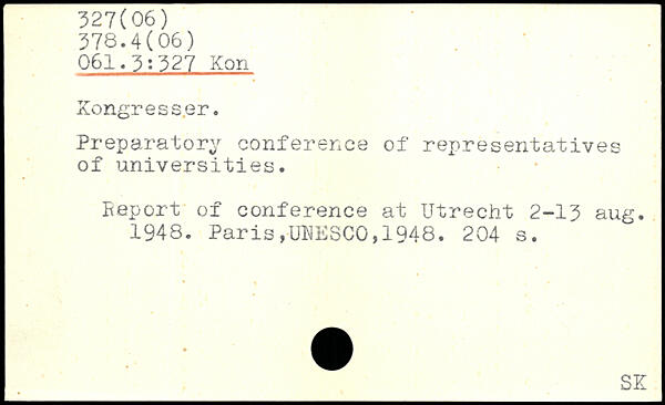 Preparatory conference of representatives of universities. Beport of conference at Utrecht 2-13 aug. 1948.