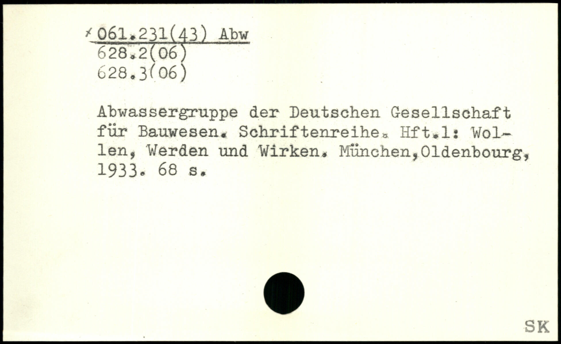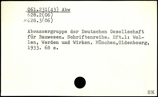 Abwassergruppe der Deutschen Gesellschaft für Bauwesen, Schriftenreihe. Hft.l: Wol~ len, Werden und Wirken.