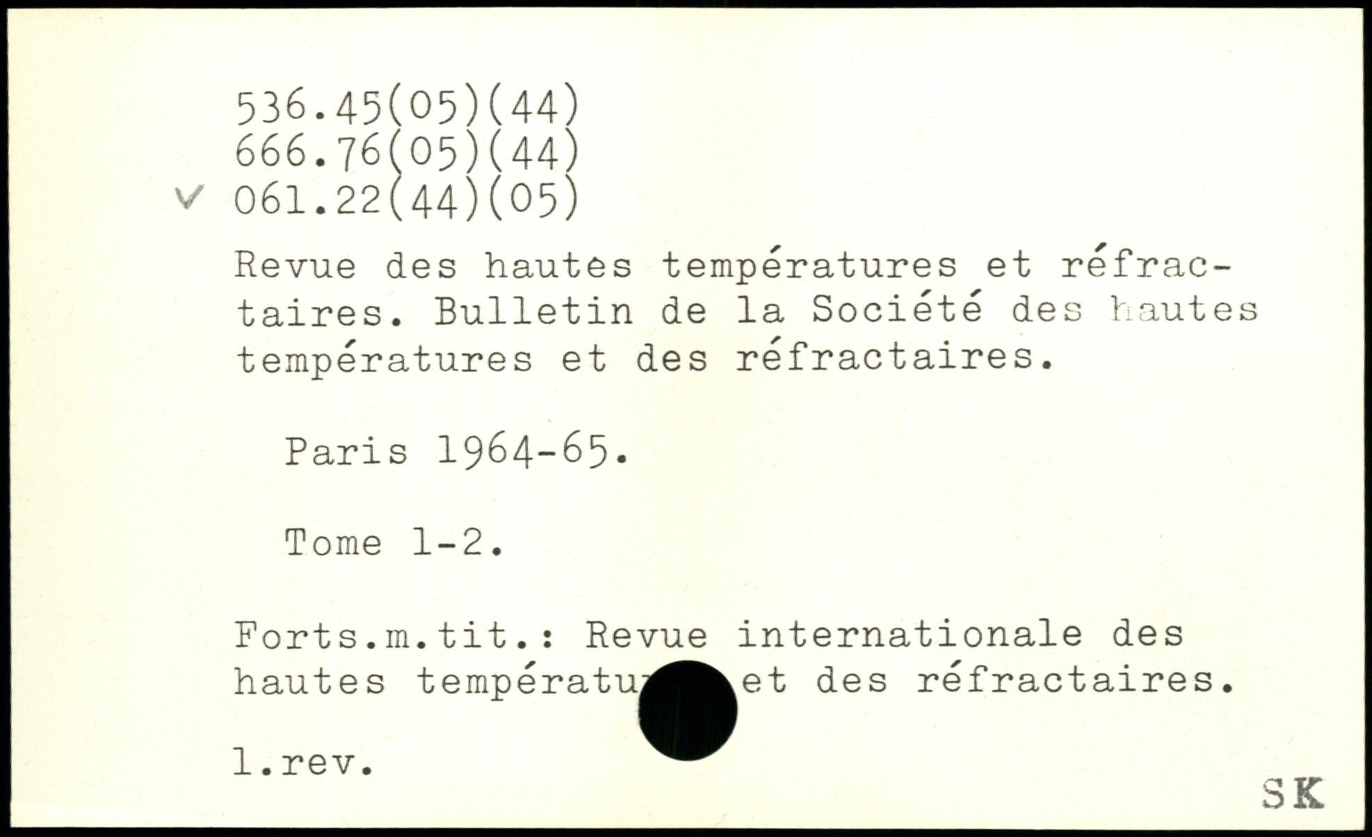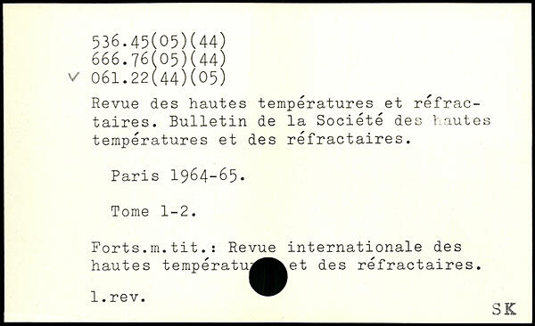Revue des hautes températures et réfractaires. Bulletin de la Société des hautes températures et des réfractaires.