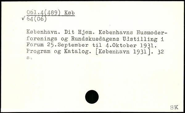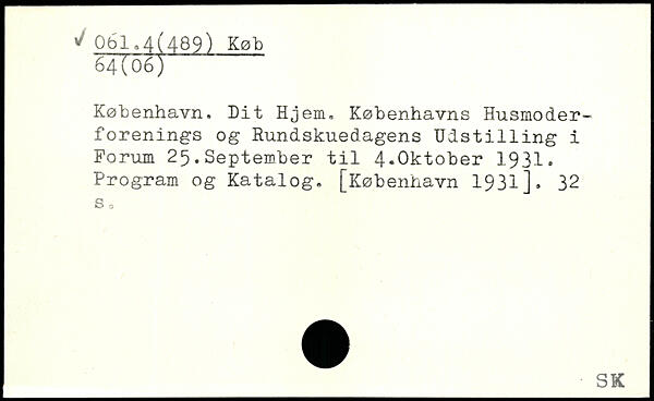København. Dit Hjem, Københavns Husmoderforenings og Rundskuedagens Udst1111ng i Forum 25.September til 4,0ktober 1931. j Program og Katalog.