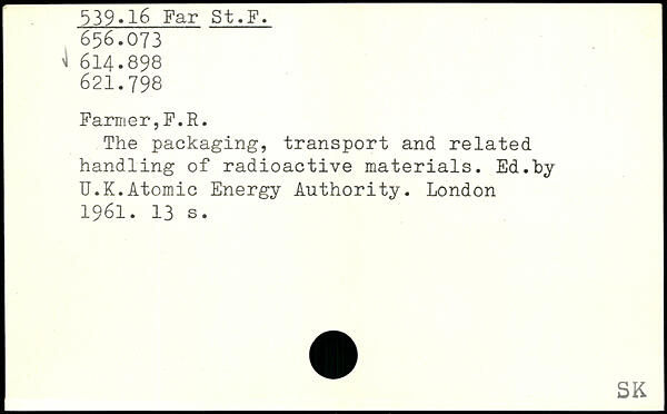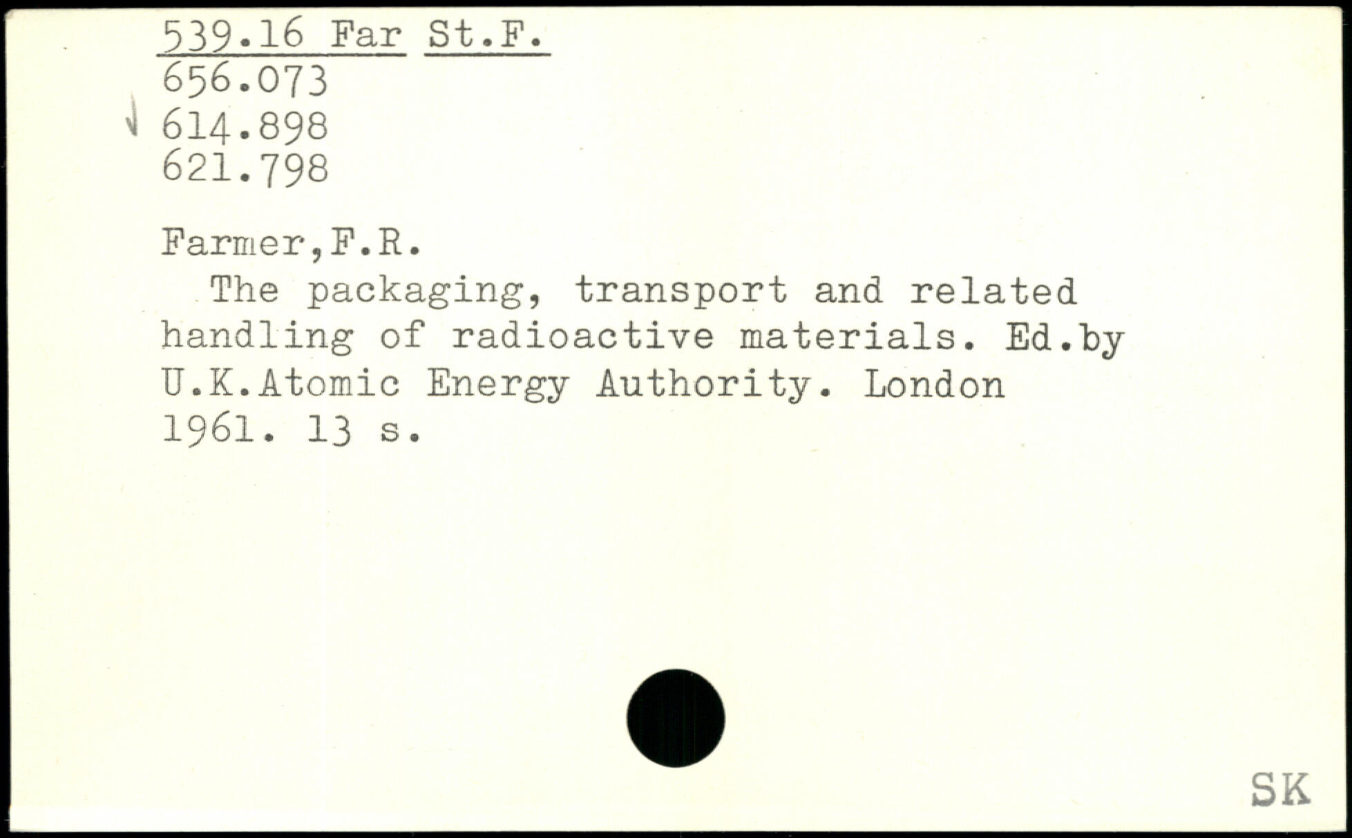 The packaging, transport and related handling of radioactive materials. Ed.by U.K.Atomic Energy Authority.