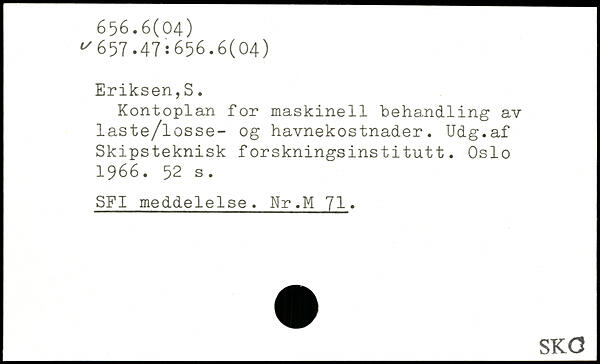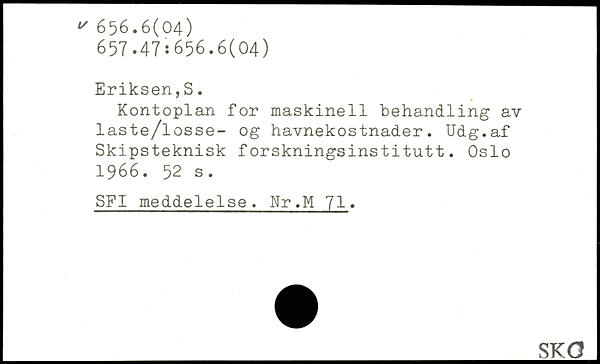 Kontoplan for maskineil behandling av laste/losse- og havnekostnader. Udg.af Skipsteknisk forskningsinstitutt. Oslo 1966.