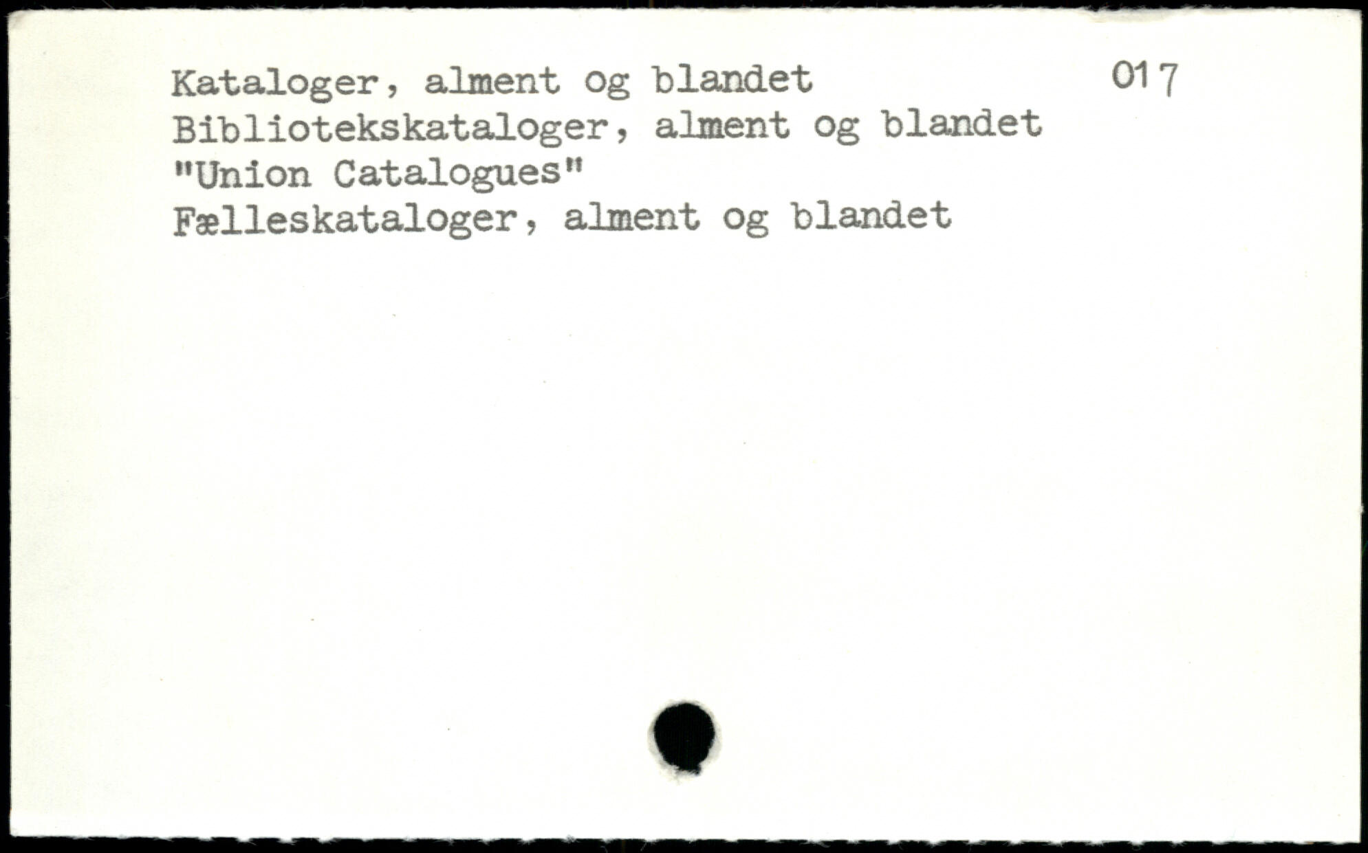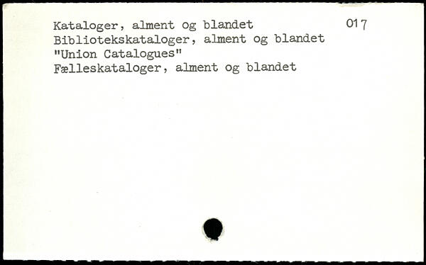 Kataloger, alment og blandet 01 7 Bibliotekskataloger, alment og blandet "Union Catalogues" Fælleskataloger, alment og blandet