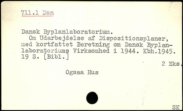 Dansk Byplanlaboratorium. Om Udarbejdelse af Dispositionsplaner, med kortfattet Beretning om Dansk Byplan-laboratoriums Virksomhed i 1944. Kbh.1945.