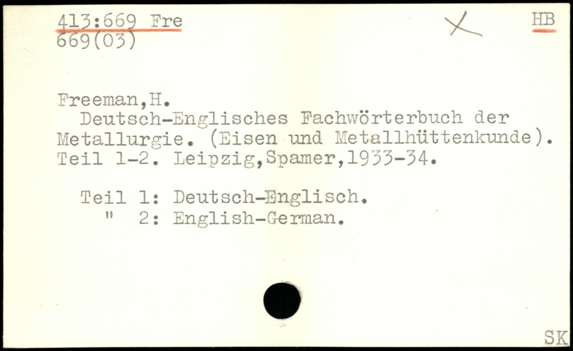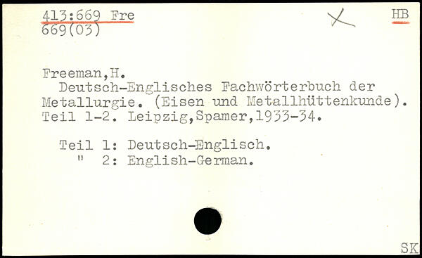 Deutsch-Englisches Fachwörterbuch der Metallurgie. (Eisen und Metallhüttenkunde). Teil 1-2.