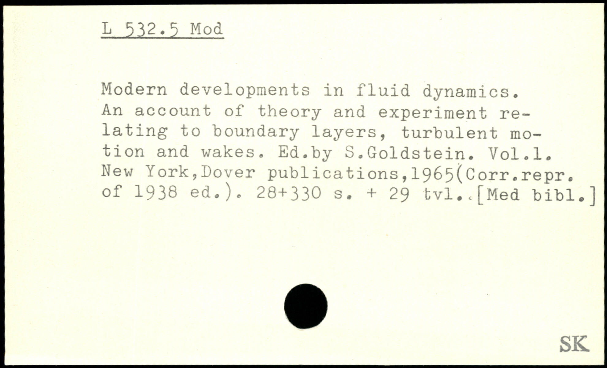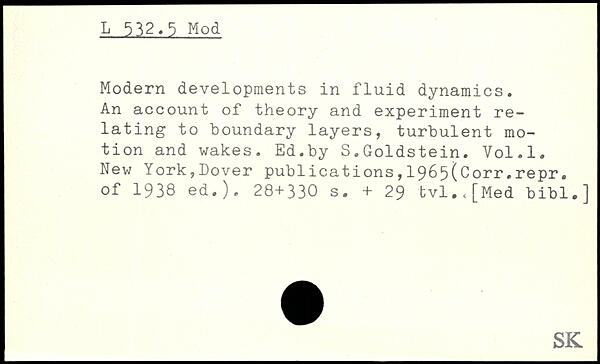 Modern developments in fluid dynamics. An account of theory and experiment relating to boundary layers, turbulent motion and wakes. Ed.by S.Goldstein.