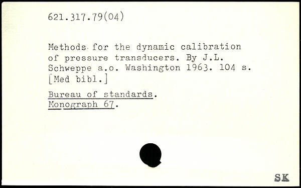 Methods for the dynamic calibration of pressure transducers. By J.L. Schweppe a.o.