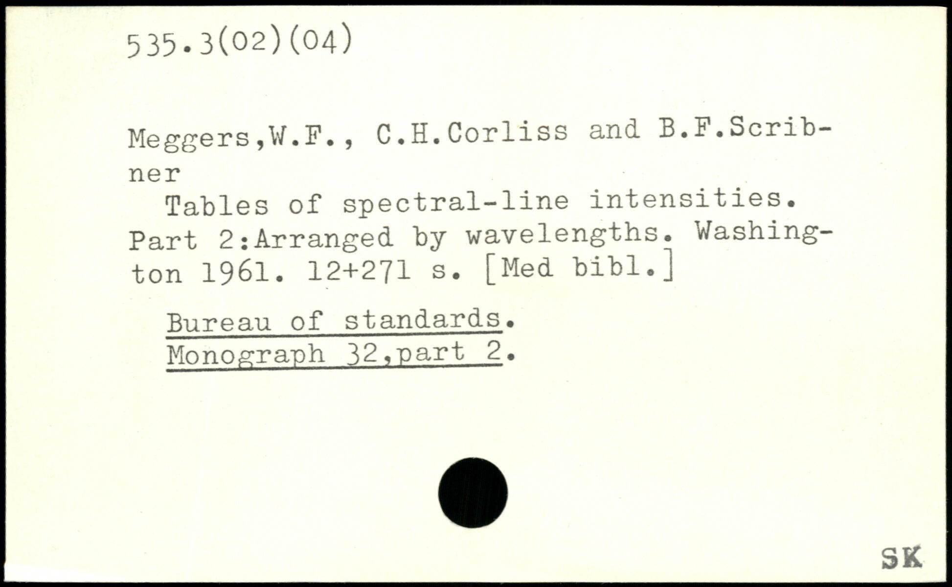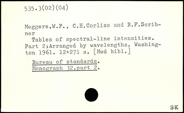 MeggerSjW.F. , C.H.Corliss a.nd. B.F.Scribner Tables of spectral-line intensities. Part 2:Arranged by wavelengths.