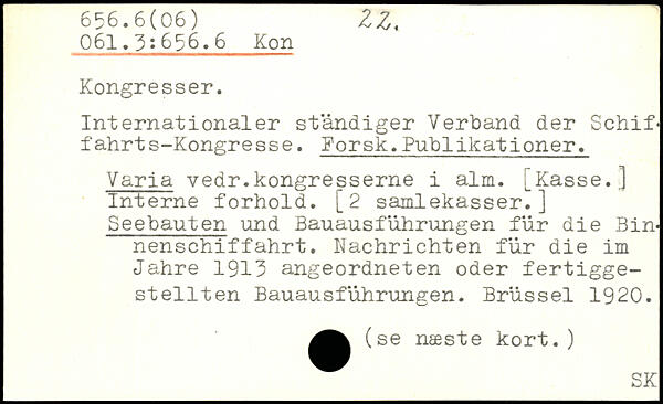 Internationaler ständiger Verband der Schiffahrts-Kongresse. Porsk.Publikationer. Varia vedr.kongresserne i alm. [Kasse.] Interne forhold. [