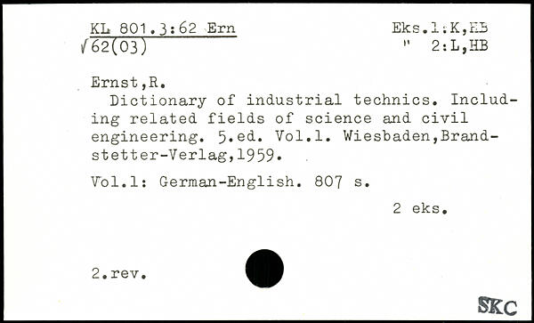 Dictionary of industrial technics. Including related fields of science and civil engineering.