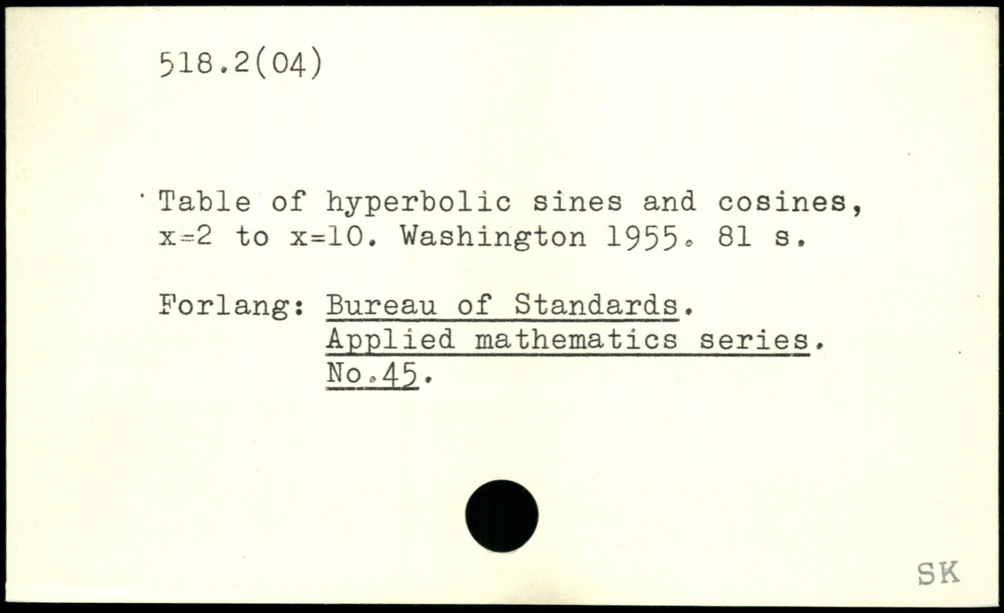 ‘Table of hyperbolic sines and cosines, to x=10.