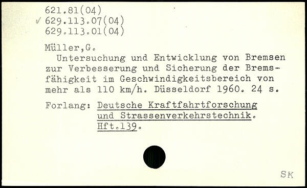 Untersuchung und Entwicklung von Bremsen zur Verbesserung und Sicherung der Bremsfähigkeit im Geschwindigkeitsbereich von mehr als 110 km/h. Düsseldorf 1960.