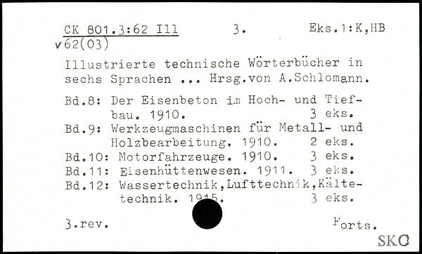 Illustrierte technische Wörterbücher in sechs Sprachen ... Hrsg.von A.Schlomann.