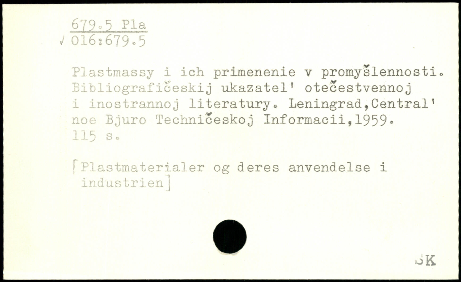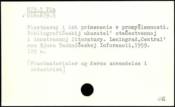 Piastmassy i ich primenenie v promyslennosti. Bibliografieeskij ukazatel" otecestvennoj i inostran.no j literatury, Leningrad,Central! noe Bjuro Techniceskoj Informacii,1959-