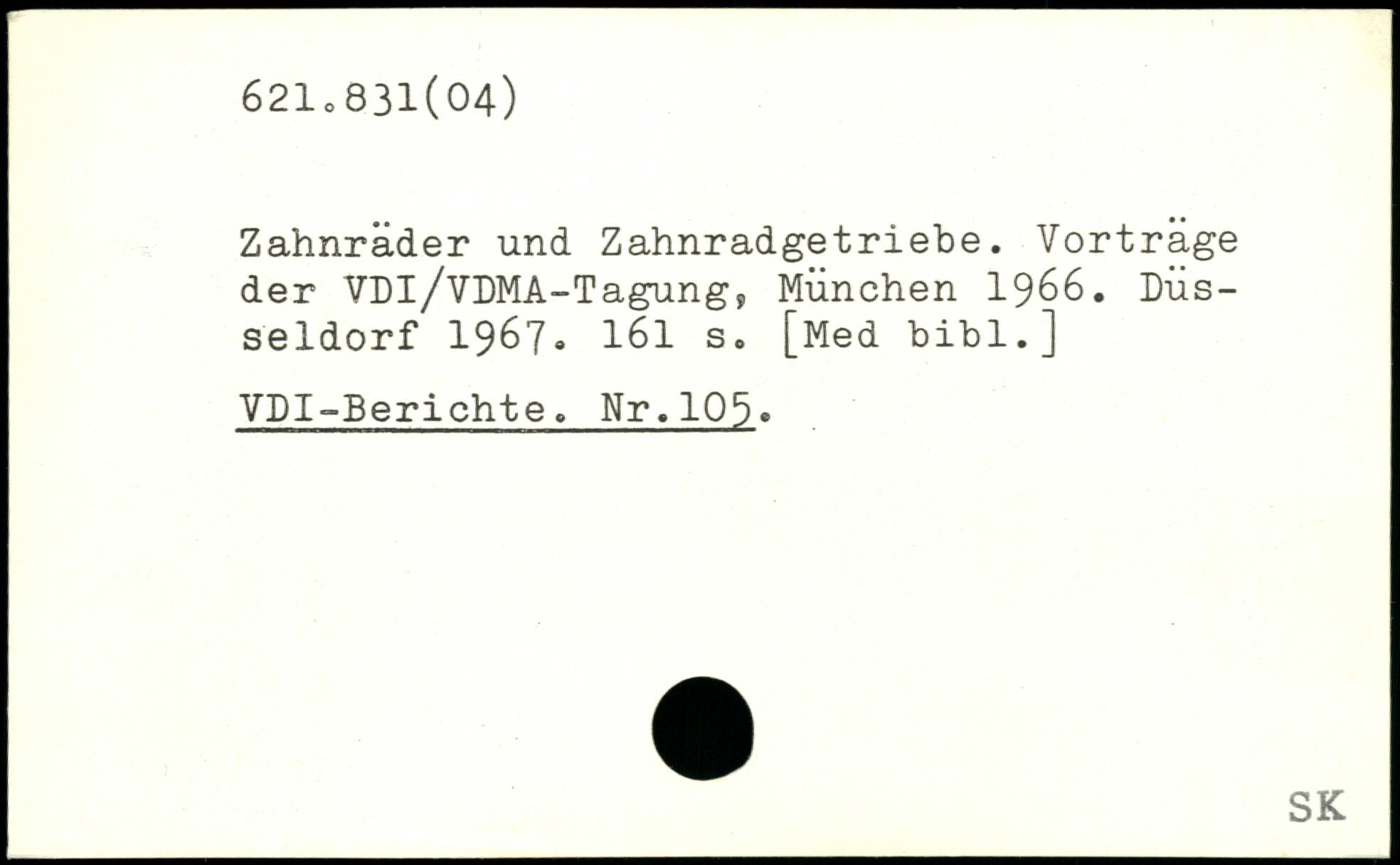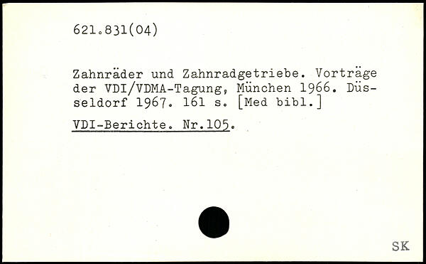 Zahnräder und Zahnradgetriebe. Vorträge der VDl/VDMA-Tagung