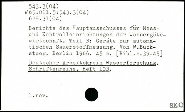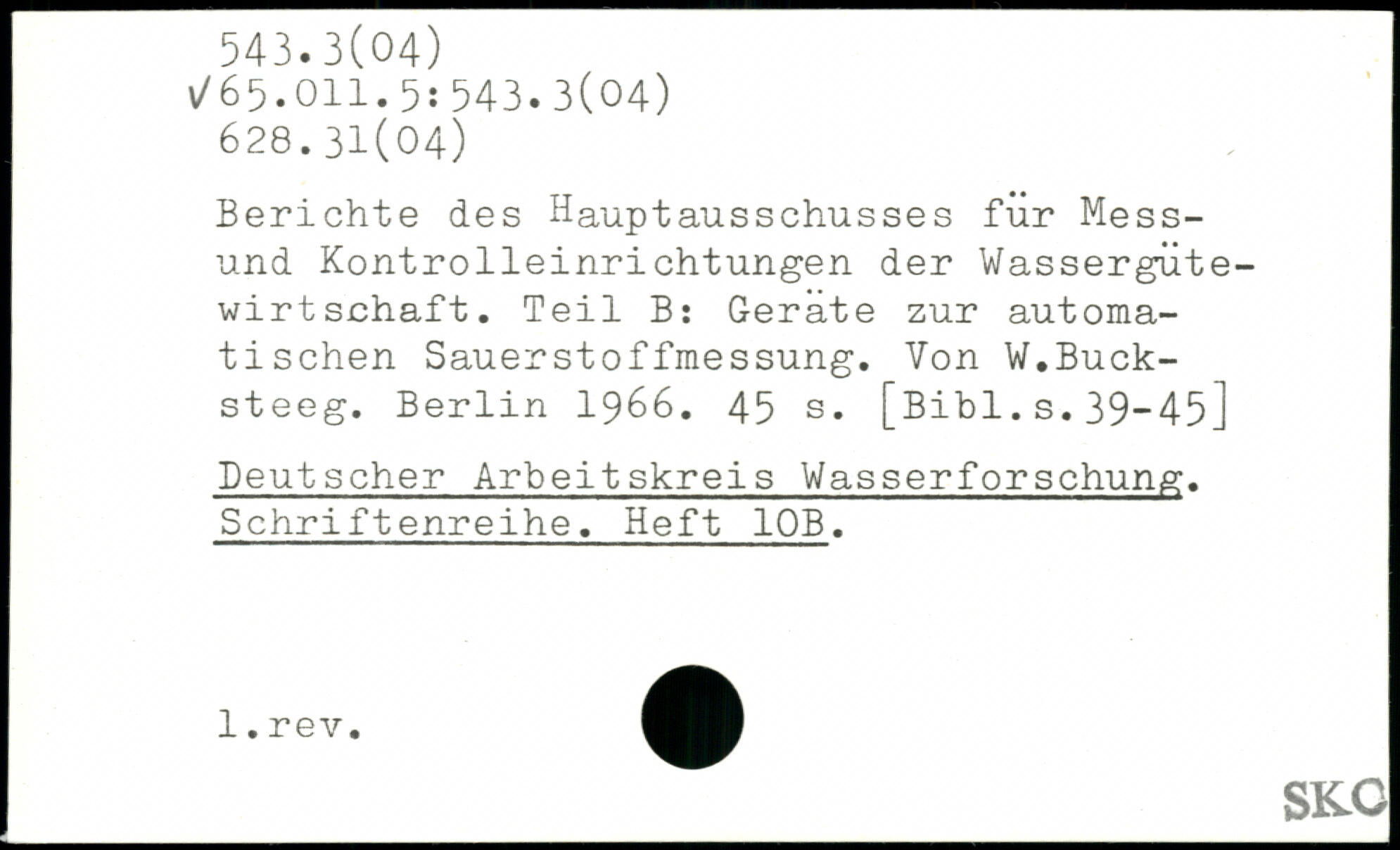 Berichte des Hauptausschusses für Mess-und Kontrolleinrichtungen der Wassergüte-wirtschaft. Teil B: Gerate zur automatischen Sauerstoffmessung. Von W.Bucksteeg.