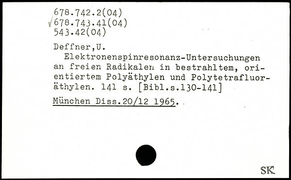 Elektronenspinresonanz-Untersuchungen an freien Radikalen in bestrahltem, orientiertem Polyäthylen und Polytetrafluoräthylen.