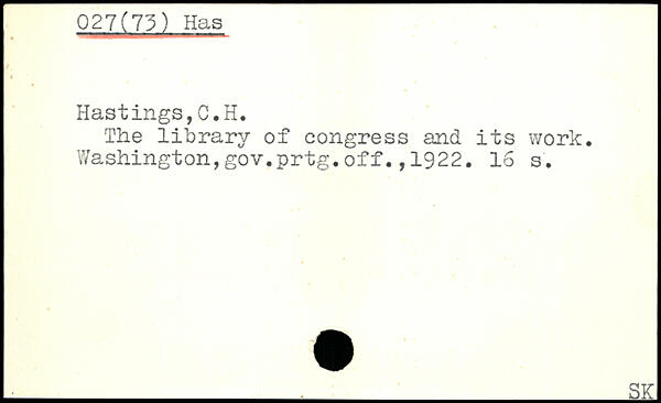 The library of congress and its work. Washington,gov.prtg.off1922.