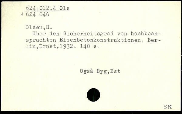 01sen,H, Über den Sicherheitsgrad von hochbeanspruchten Eisenbetonkonstruktionen.