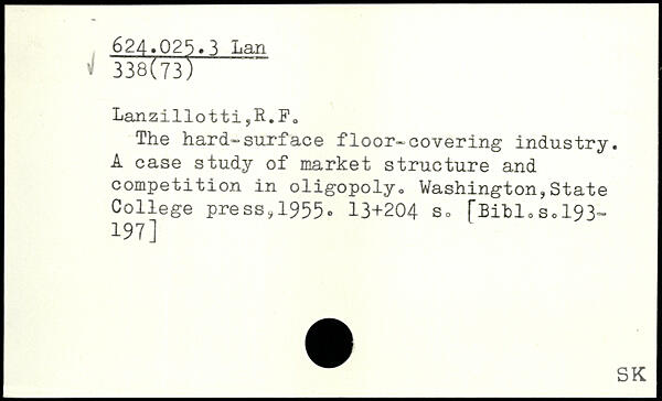 The hard-surface floor-covering industry. A case study of market structure and competition in oligopoly,