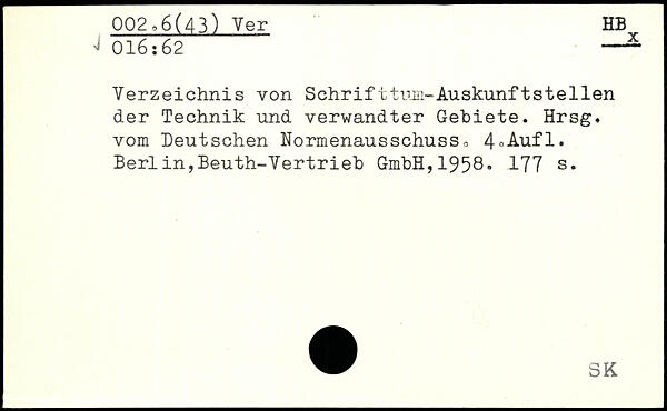 Verzeichnis von Schrifttum-Auskunftstellen der Technik und verwandter Gebiete. Hrsg, vom Deutschen Normenausschüsse