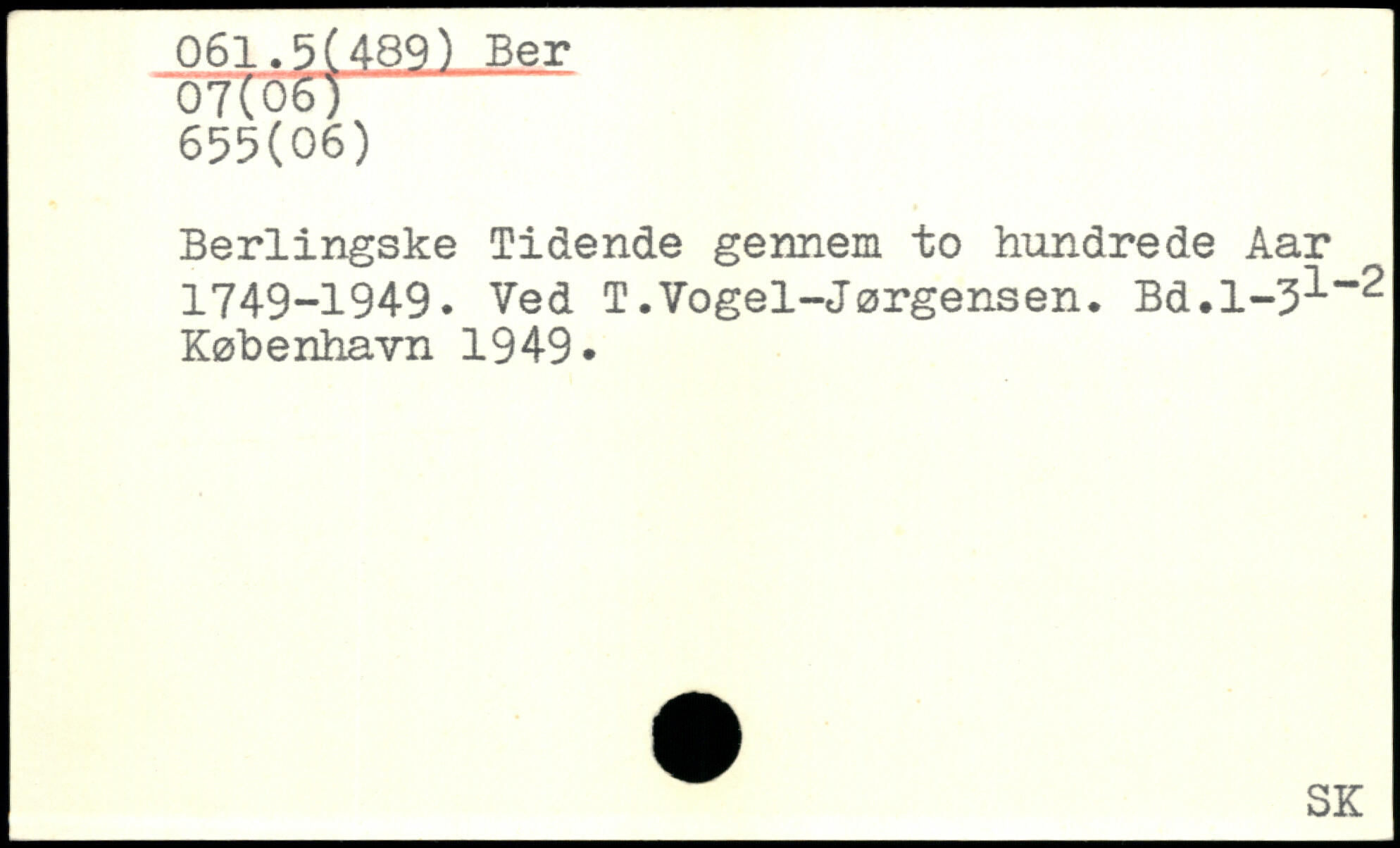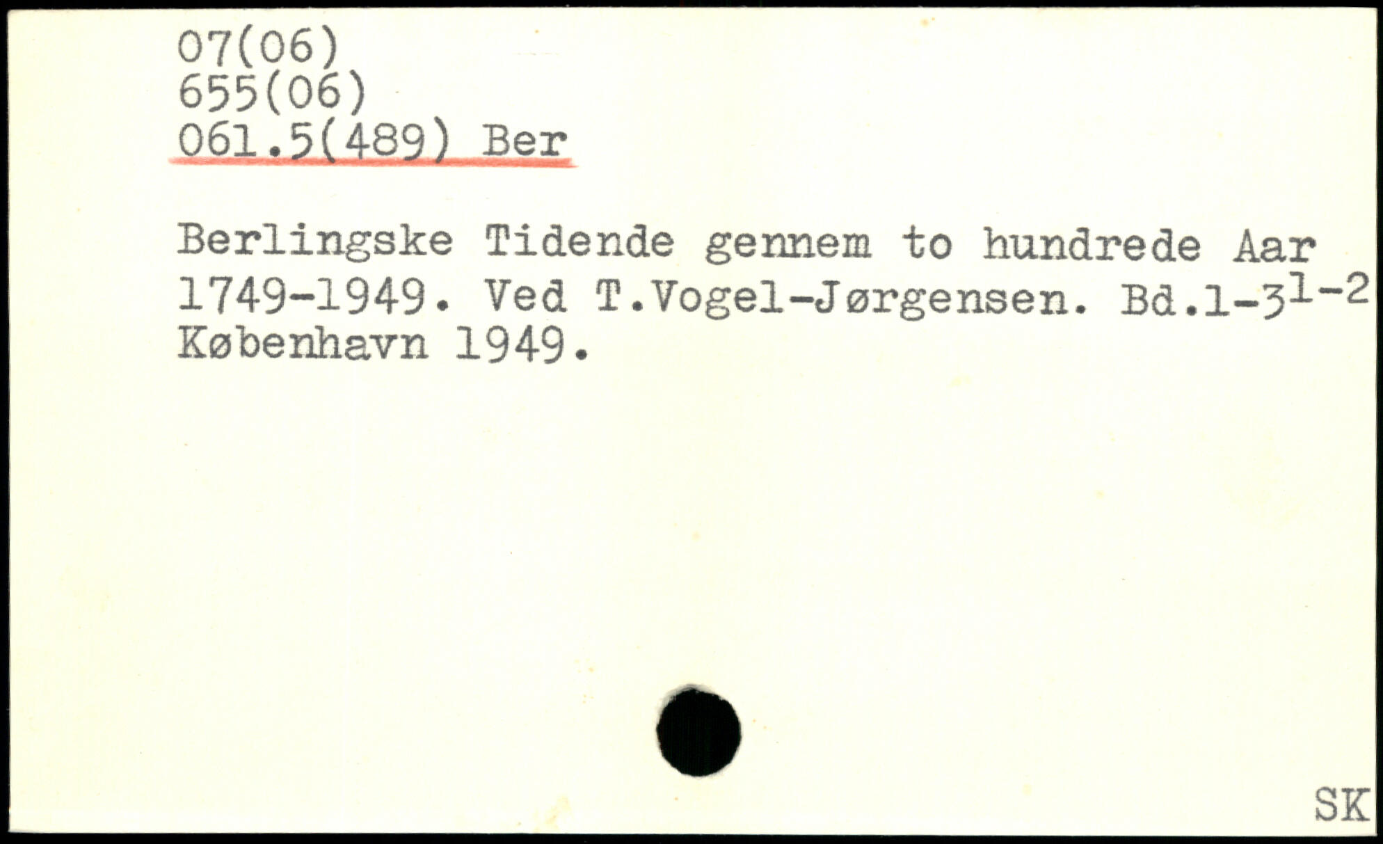 Berlingske Tidende gennem to hundrede Aar 1749-1949. Ved T .Vogel-Jørgensen.