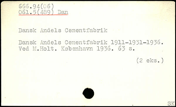 Dansk /indels Cementfabrik Dansk Andels Cementfabrik 1911-1931-1936. Ved M.Holt.