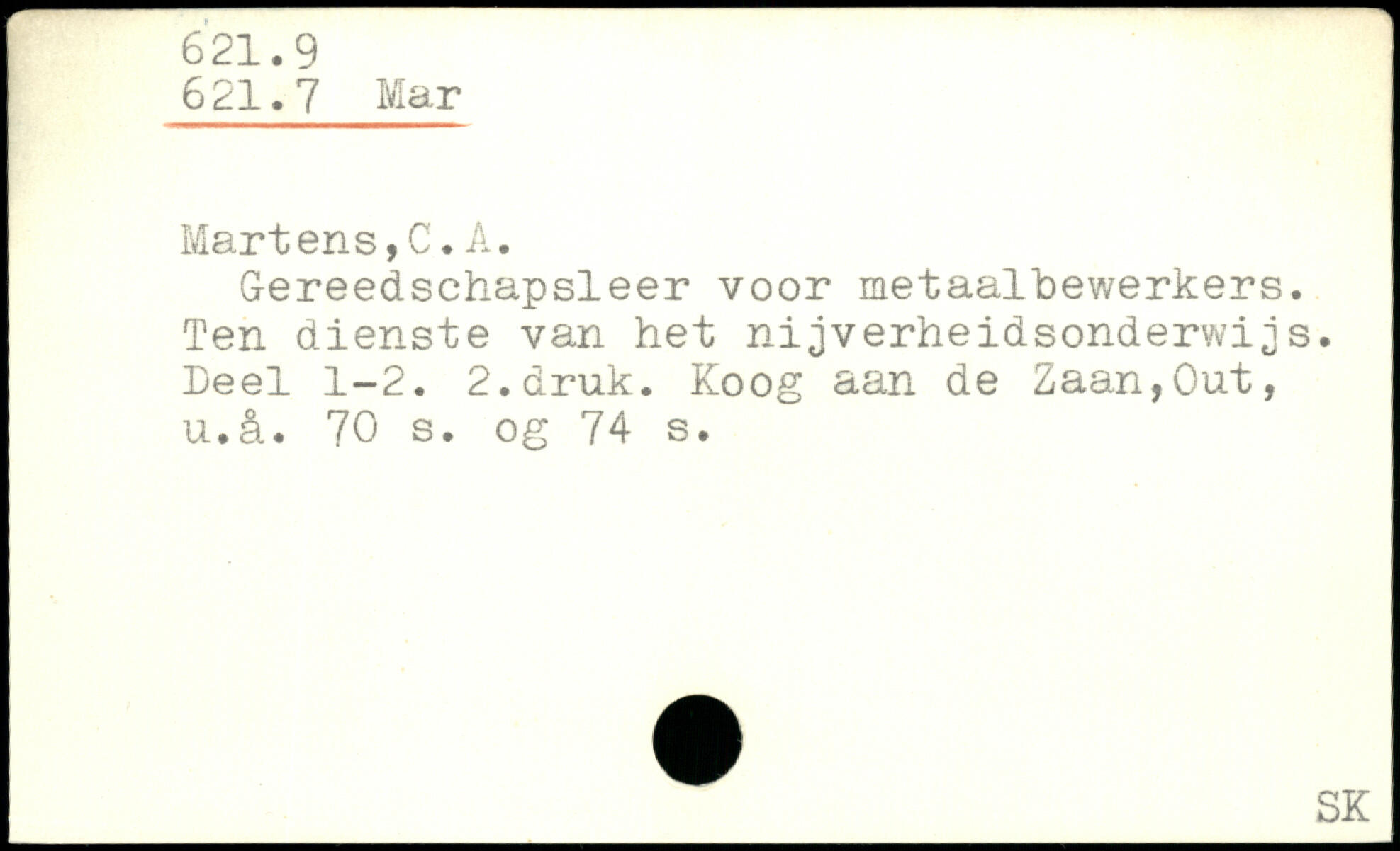 Gereedschapsleer voor metaalbewerkers. Ten dienste van het nijverheidsonderwiis. Deel 1-2. 2.druk. Koog aan de Zaan,Out, u.å.