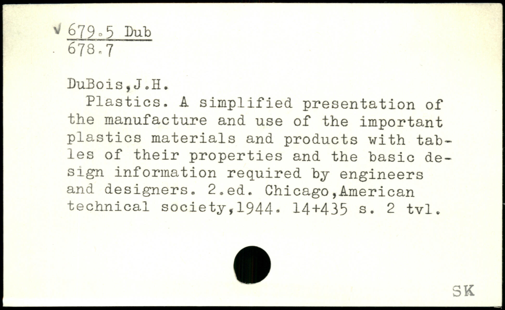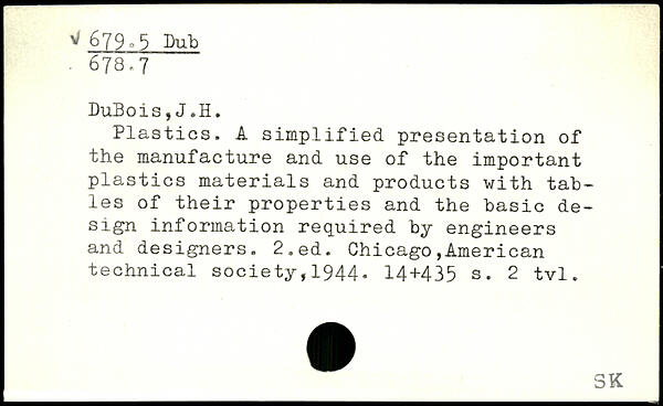 Plastics. A simplified presentation of the manufacture and use of the important plastics materials and products with tab-les of their properties and the basic design information required by engineers and designers.