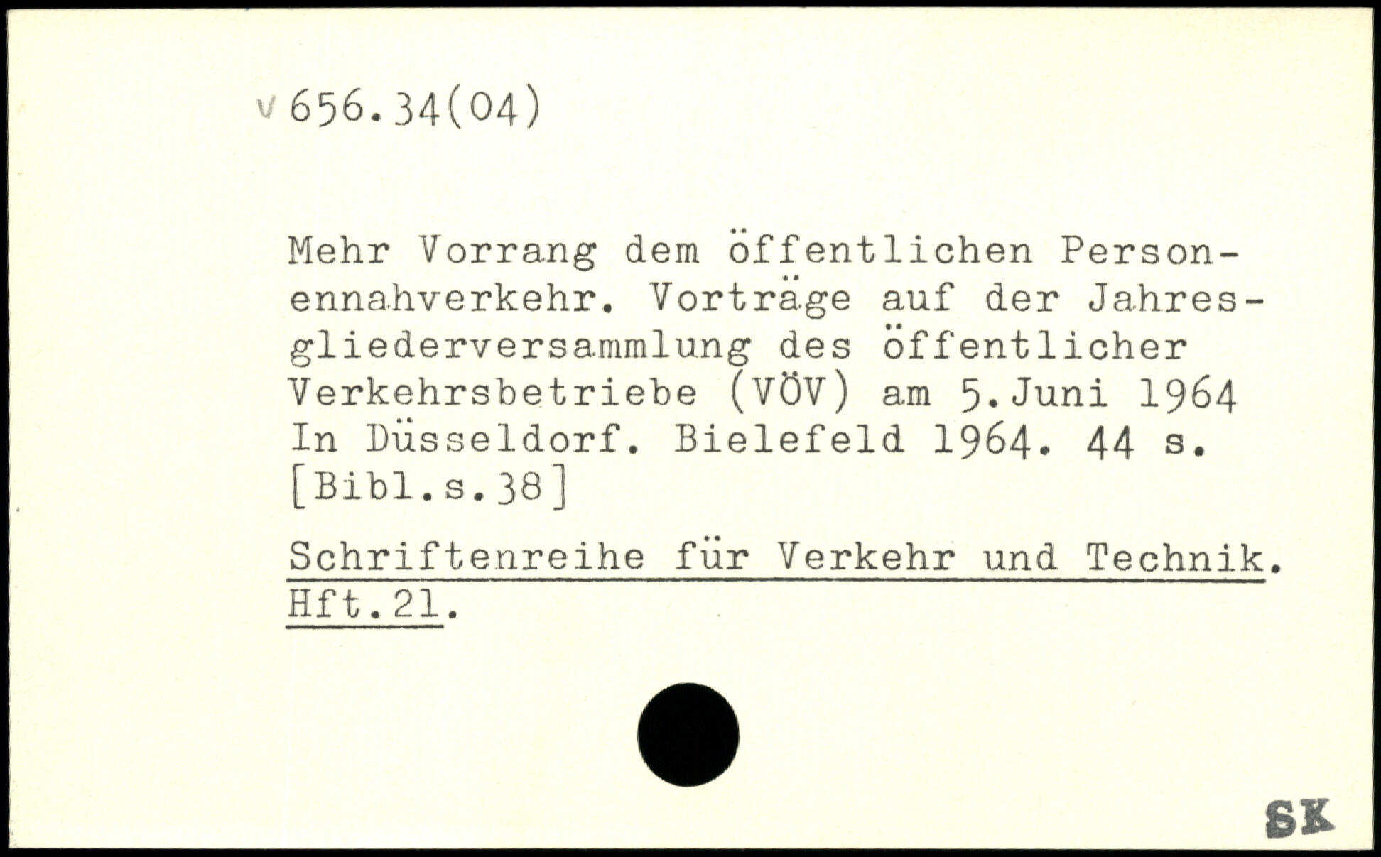 Mehr Vorrang dem öffentlichen Personennahverkehr. Vorträge auf der Jahresgliederversammlung des öffentlicher Verkehrsbetriebe (VÖV) am 5.Juni 1964 In Düsseldorf. Bielefeld 1964.
