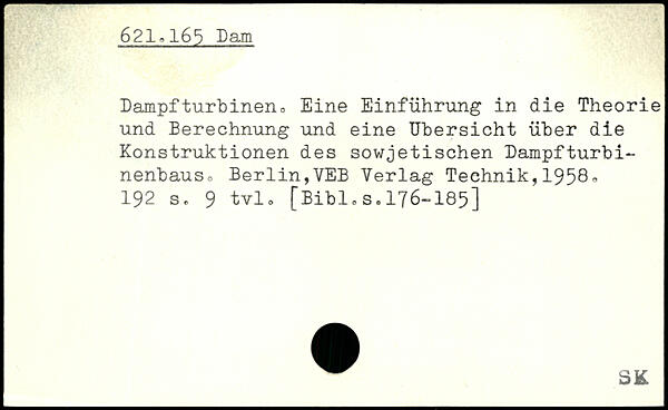Dampfturbinen, Eine Einführung in die Theorie und Berechnung und eine Übersicht über die Konstruktionen des sowjetischen