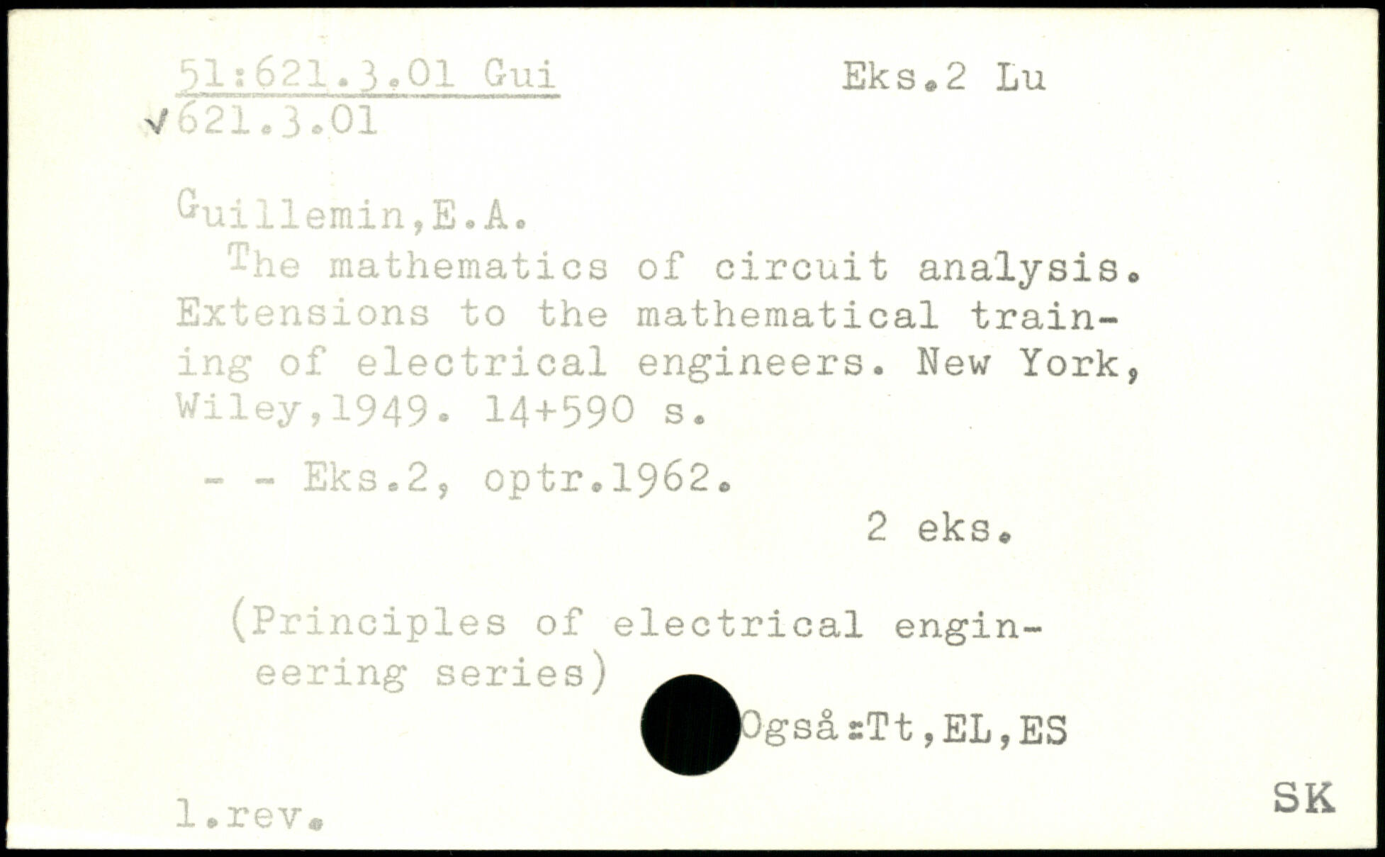 ^uillemin,E.A. -he mathematics of circuit analysis# I Extensions to the mathematical training of electrical engineers.