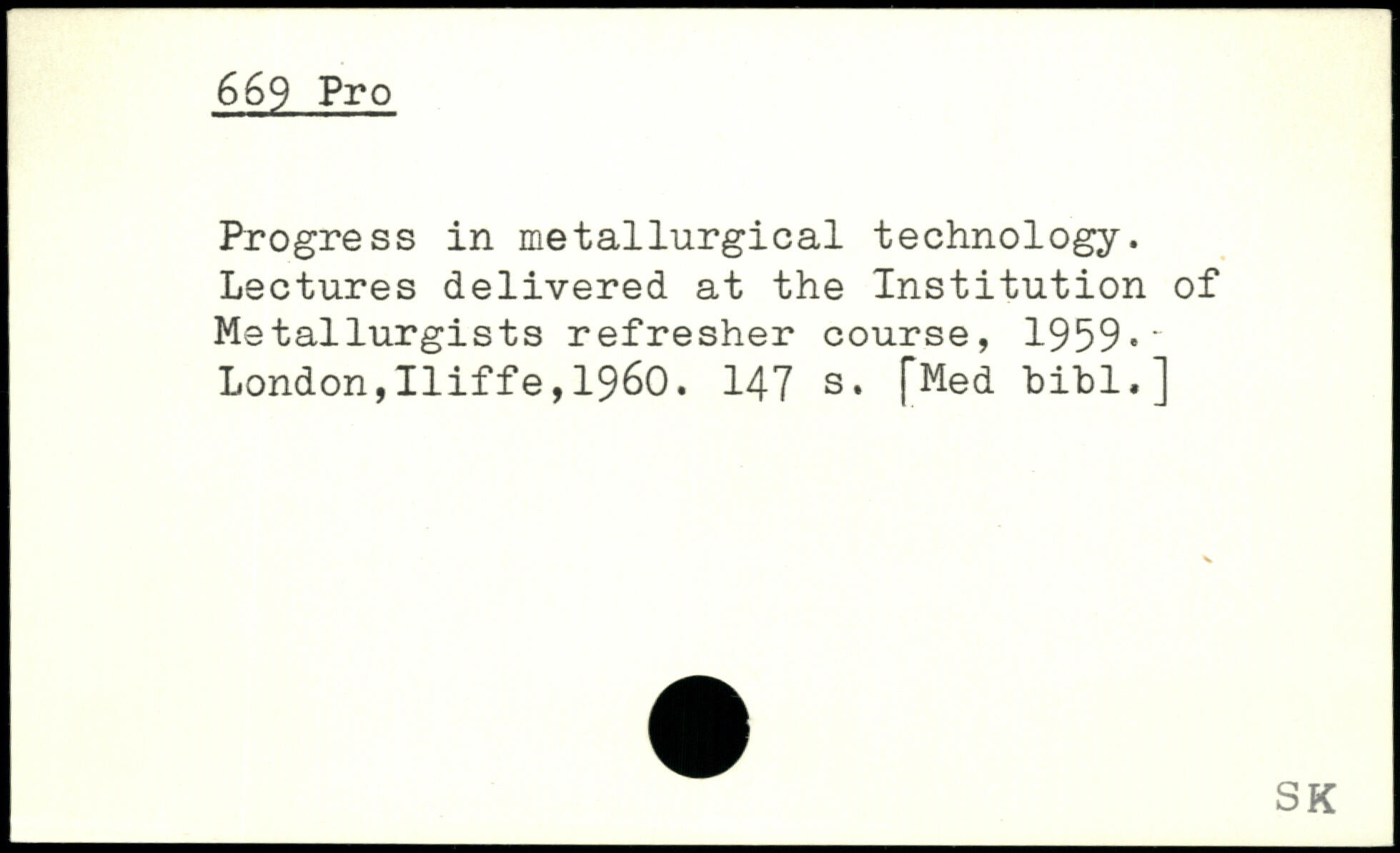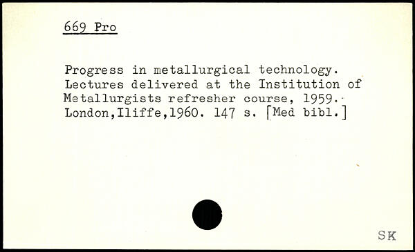 Progress in metallurgical technology. Lectures delivered at the Institution of Metallurgists refresher course, 1959.~